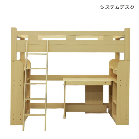 システムベッド 学習机 木製 ハイタイプ 大人 子供 机付き ロフトベッド 分割 システムロフトベッド システムデスク ナチュラル メープル ベッド すのこベッド シングルベッド 机 デスク 書棚 オープンラック 北欧 bed 子供部屋